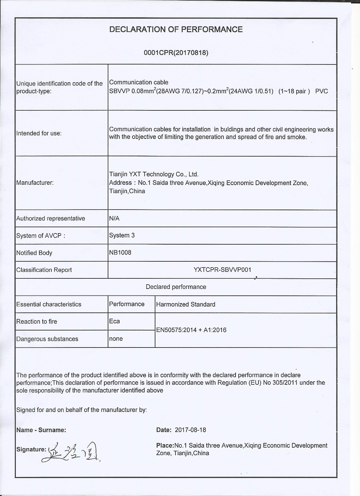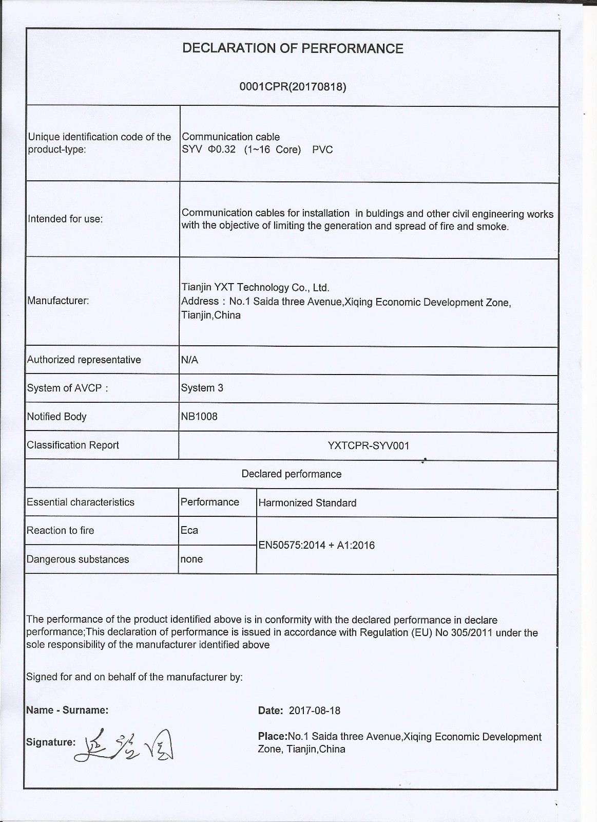 億鑫通CPR---DOP(declaration of performance)聲明!! 發(fā)布日期:2022-12-09 瀏覽量:33986 以下是我司的CPR---DOP(declaration of performance)聲明!!
